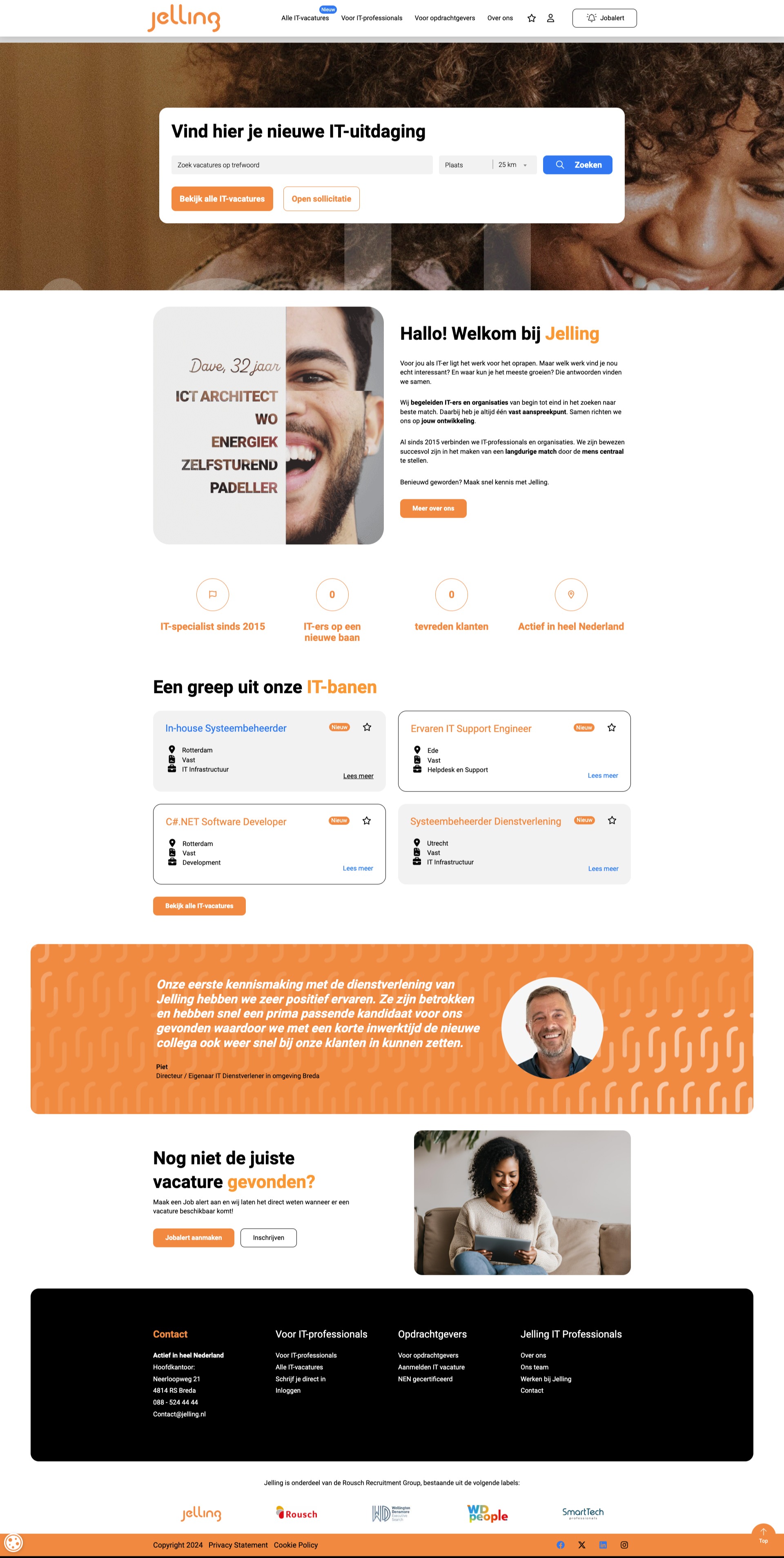 De nieuwe website is niet alleen inhoudelijk sterk, maar ook technisch slim. Dankzij de koppeling met het ATS Otys, die een custom aanpassing heeft gekregen voor onder andere Jelling, worden matches sneller én beter gemaakt. Zo brengt Jelling talent en organisaties samen op een manier die duurzaam werkt; met oog voor mens, vak en toekomst.