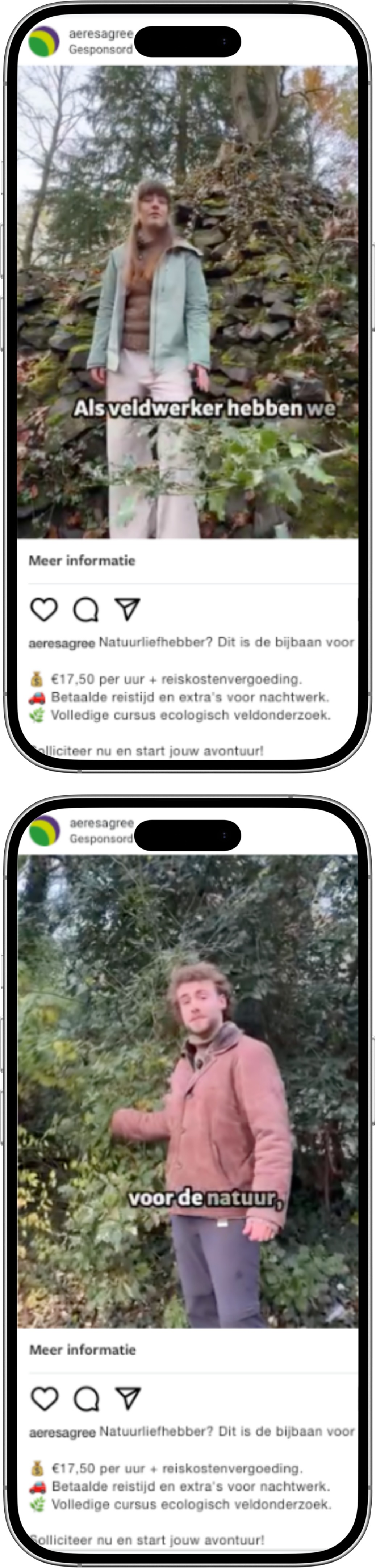 De campagne richtte zich specifiek op een jongere doelgroep via Meta (Instagram). Dit bleek een schot in de roos: de resultaten waren zo goed dat uitbreiding naar kanalen als TikTok uiteindelijk niet eens meer nodig was. We testten diverse video-uitingen, waarbij de content met veldwerker Anouk er duidelijk uitsprong qua betrokkenheid.
