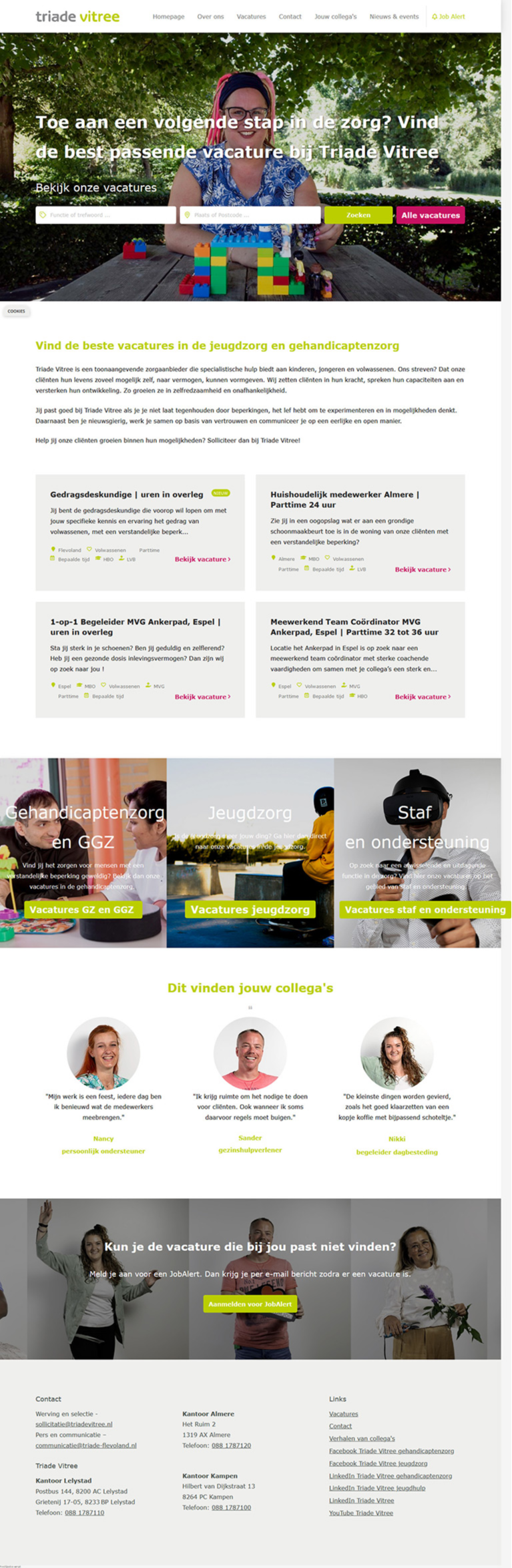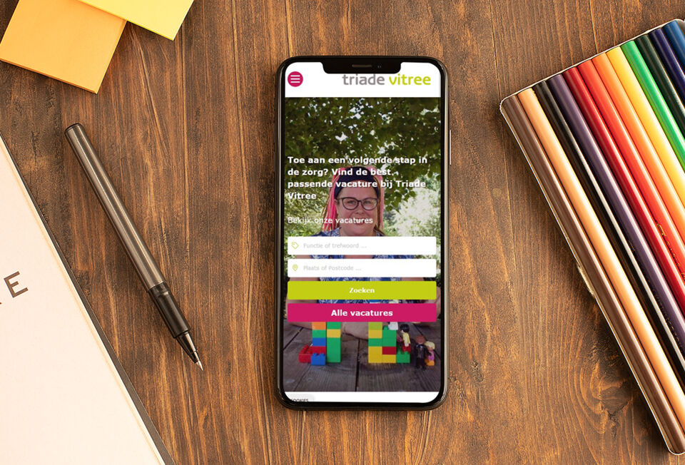 Triade en Vitree zijn gefuseerd en maakten voorheen beide gebruik van een eigen "vacature" website. Graag willen ze onder één naam verder en daar hoort ook een eigen werken-bij website bij. Een plek waar het voor specialistisch zorgpersoneel duidelijk en herkenbaar wordt, waar Triade Vitree voor staat en wat zij als werkgever in een breed werkveld te bieden hebben.