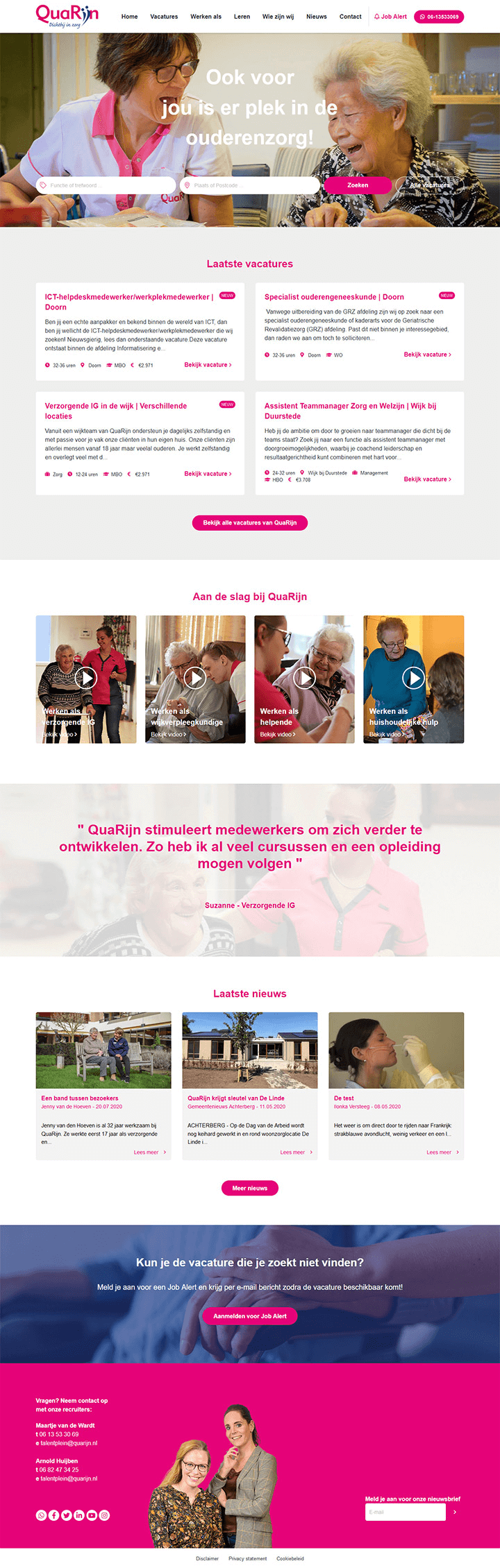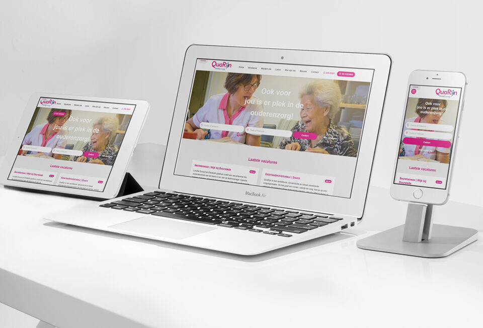 Hiervoor is gebruik gemaakt van het Getnoticed template, waar vervolgens enkele aanpassingen op zijn doorgevoerd. In de basis kan alle content door QuaRijn zelf worden aangepast. Door middel van een startsessie is een gezamenlijk doel en plan van aanpak opgesteld. De huidige werken-bij site is niet gebruiksvriendelijk en daarnaast kon er geen data goed inzichtelijk worden gemaakt. De toegankelijkheid van de nieuwe website en het eenvoudig kunnen solliciteren waren dus de belangrijkste pijlers binnen dit project.